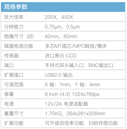 ● 适用MT/MPO公头母头以及多芯模块端面检测。